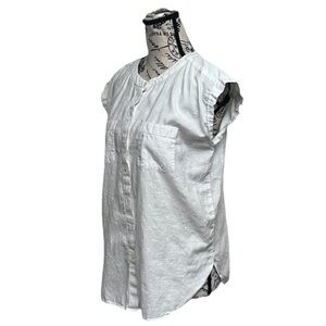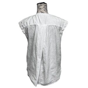 The LOFT ivory Embroidered Blouse is a stylish and versatile piece perfect for any wardrobe. This sleeveless blouse features a round neckline and a relaxed fit, making it comfortable and easy to wear. The embroidered accents add a touch of elegance, while the semi-sheer material gives it an ethereal, angelcore feel. Ideal for a variety of occasions, this blouse can be dressed up or down to suit any look, whether you're going for a preppy, hippie, or beachy vibe. Western coastal beach mature modest