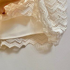 Ivory dress by Loft. Embroidered chevron layer over a full lining. Zigzag bottom hem.Zipper back with a tie at the neckline. Size 4. Excellent condition.