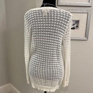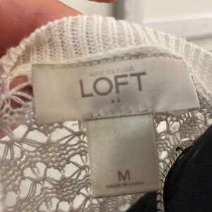 LOFT ivory v neck pullover lightweight long sweater top crochet EUC Like New Size Medium (true to size, no shrinkage and not stretched out). Wore once. Very delicate feminine knit. Banded bottom.