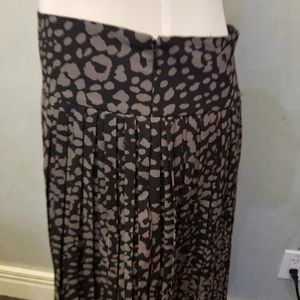 In great condition LOFT leopard mini skirt 100% polyester with 100% polyester lining. the waist is 14in and the length is 18in has a side zipper and clasp.