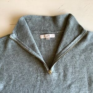 LOFT light green 1/4 zip mock neck ribbed sweater Large