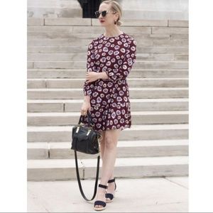 LOFT long sleeve drop waist dress with floral pattern, size 2.