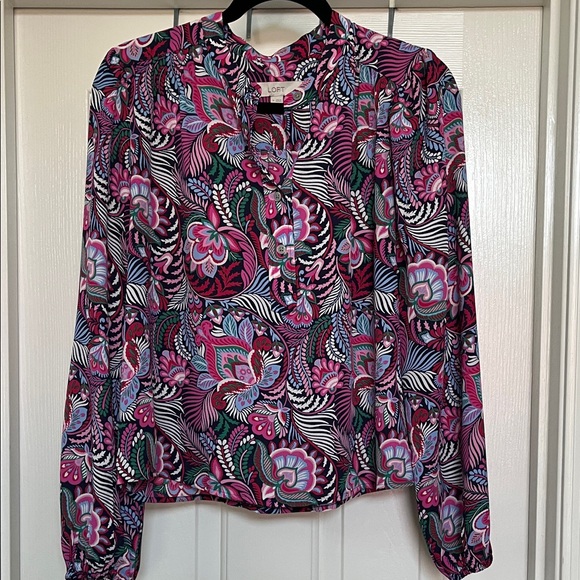 Brighten your style with this LOFT blouse. Features a bold floral design. Perfect for any occasion. Size medium Blousy sleeve /elastic
