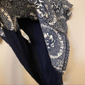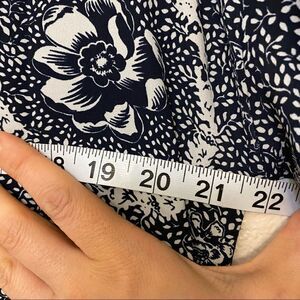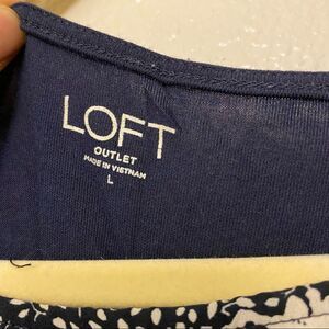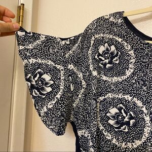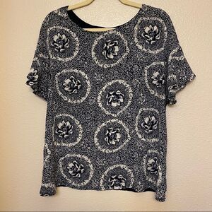 LOFT navy white print floral crew neck ruffle short sleeve top blouse cheap L