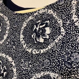 LOFT navy white print floral crew neck ruffle short sleeve top blouse cheap L