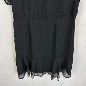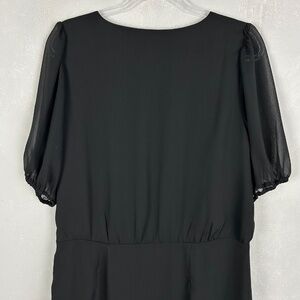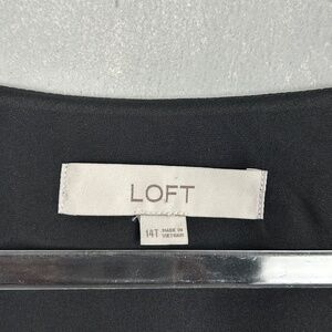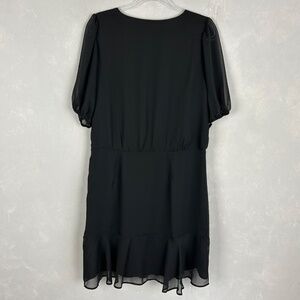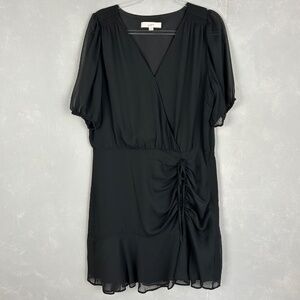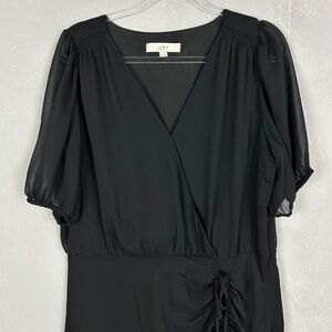 LOFT size 14 Tall black dress side ruched chiffon short sleeve v-neck side zip