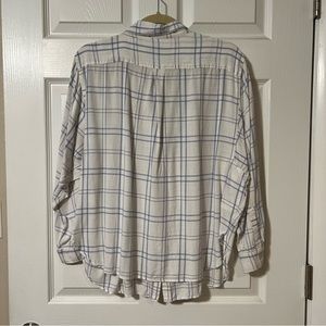 GUC LOFT button down features a cute blue and white square pattern. It’s very soft! Does not have any holes or stains.