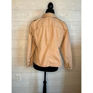 LOFT tan denim utility jacket. Excellent condition, no rips, tears or stains. Button closure front pockets, button cuffs, adjustable straps for a flattering fit. Full zipper with button closure in front. 100% cotton. Approximate measurements pit to pit 19”, shoulder to hem 20”, size medium petite.