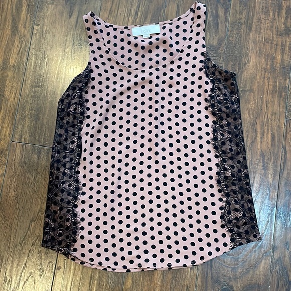 Loft polka dot top with lace sides, size xsmall. Color is truer in second photo