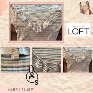 LOFT top Pastel Stripe V-Ruffle Top – Cute & Comfy Casual Tee (S) summer vibes