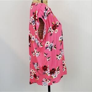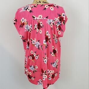 Short sleeves with v-neck. Split sides. Chest 26". Length 26". MEASUREMENTS ARE APPROXIMATE.