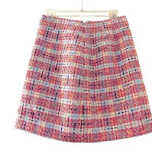 LOFT tweed skirt, size 0, pink and more, side zipper, lined. Hits above the knee