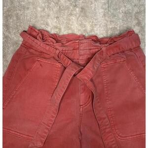LOFT washed coral/light red high-waist tie-front utility midi shorts Size Small