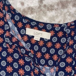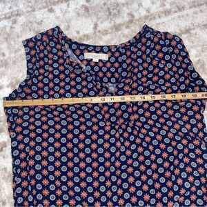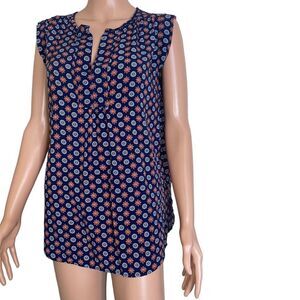 LOFT women's Navy blue geometrical pattern sleeveless lightweight blouse SZ M