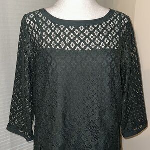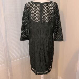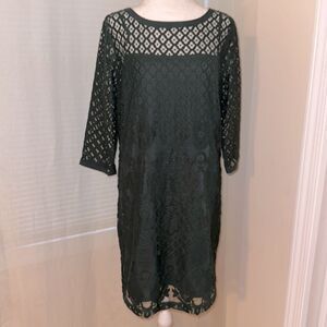 LOFT 10 Dark Green Lace Overlay Eyelet Quarter Sleeve Back Zip Shift Dress