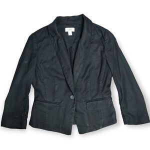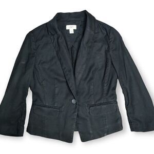 LOFT ANN TAYLOR BLACK POLY COTTON CLASSIC ONE BUTTON FITTED BLAZER JACKET SIZE 8