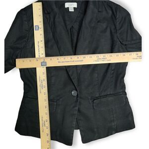 LOFT ANN TAYLOR BLACK POLY COTTON CLASSIC ONE BUTTON FITTED BLAZER JACKET
