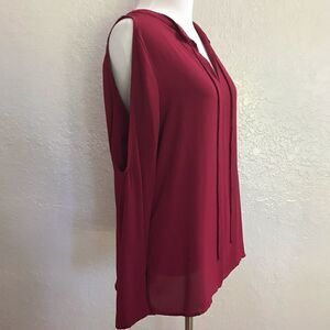 LOFT Ann Taylor Tie Neck Cold Shoulder Blouse Cranberry Color.