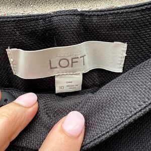 These LOFT cropped pants in a sophisticated black hue are perfect for professional settings. Crafted with a flat front design, they offer a sleek and polished look. Very good used condition