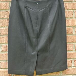 This elegant black pencil skirt from LOFT is designed for both work and cocktail occasions. Its knee-length cut and structured silhouette offer a polished and professional look, making it a versatile addition to your wardrobe.