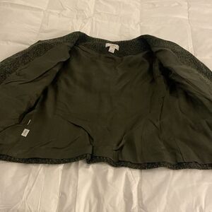LOFT Black and Green Blazer with Textured tweed Fabric