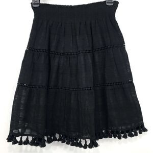 LOFT Black Tassel Hem Peasant Mini Skirt