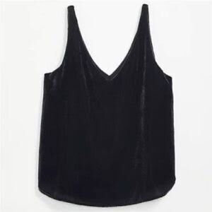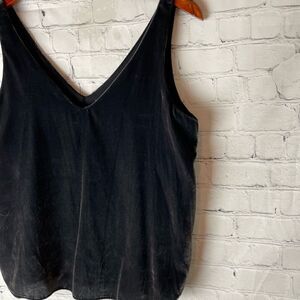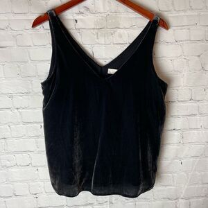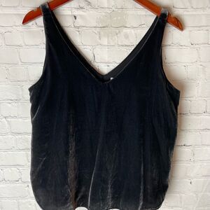 Loft Black Gray Velvet Double V Neck Tank Top Blouse Sleeveless Small