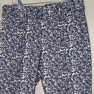 These LOFT cropped chinos showcase a sophisticated blue and white pattern, perfect for adding a touch of elegance to any outfit. The full-length design ensures a comfortable fit from waist to ankle, making them versatile for various occasions. Crafted with attention to detail, these chinos are a stylish addition to your wardrobe.