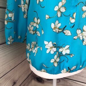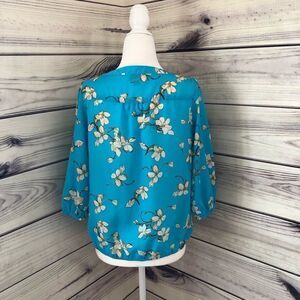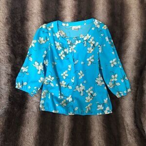 Perfect condition Loft petites Blue blouse with white flowers 3/4 sleeves with elastic