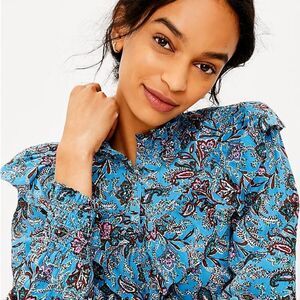 LOFT Bouquet Ruffle Shirt Blue Paisley Size XL