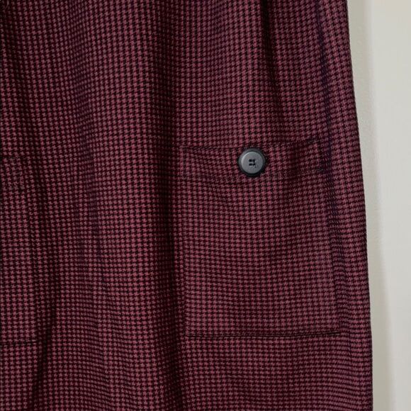 LOFT Burgundy Checked Dress with Ruffled Ivory Collar