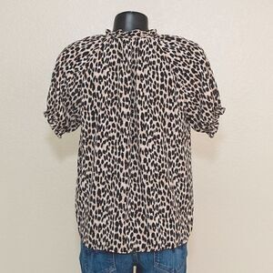 Short sleeve cheetah print LOFT top in size medium petite with string tie front.