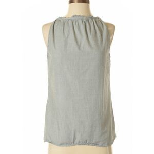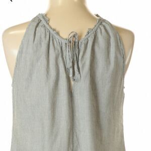 Navy and ivory mini striped all cotton halter with tie front and ruffle neckline . Easy breezy summer top in good condition.