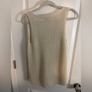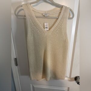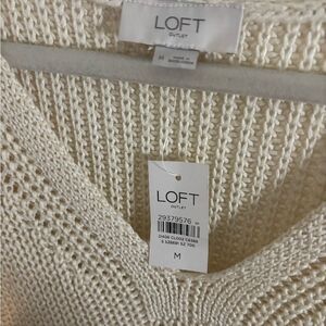 LOFT Cream Knit V-Neck Sweater crochet size m NWT