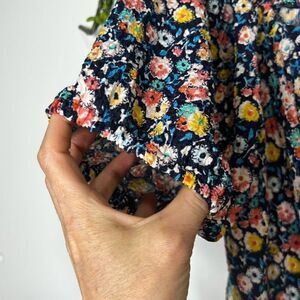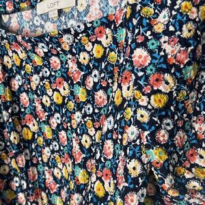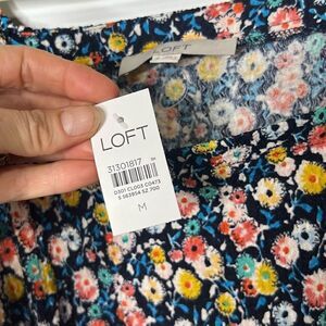 LOFT Floral Blue Blouson Sleeves Elastic Off Shoulder Front Tie NWT!