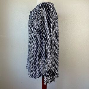 Stylish top measuring 19 inches armpit to armpit laying flat, 24 inches in length from shoulder to hem, and 28 inches in length in the longer drape in the back.