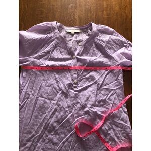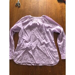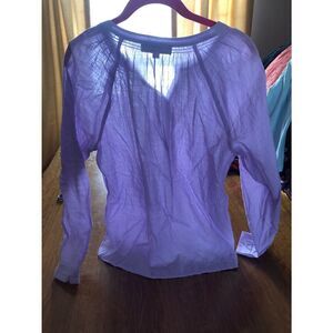 So cute. Great condition. LOFT pullover blouse. Long sleeve. Very lightweight. Color is a beautiful light lilac. The material is semi-sheer. Size small.