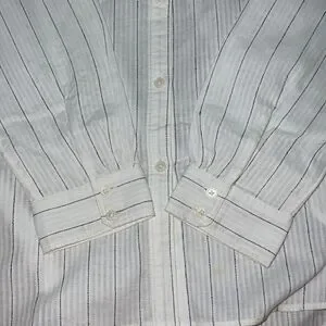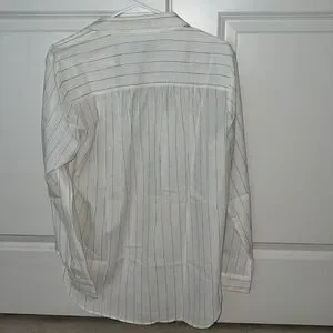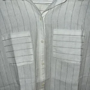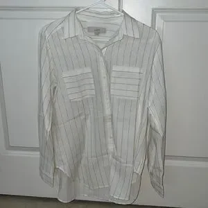 GREAT CONDITION! White with Black Stripe Detailing. Collared. Lightweight + Comfy. Button Down. Loose Fit. Long Sleeves. 100% Cotton.