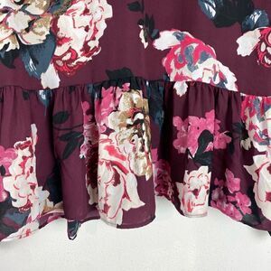 LOFT Maroon Floral Peplum Blouse D102