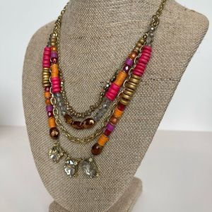 LOFT Multi color heishi bead and rhinestone crystal necklace