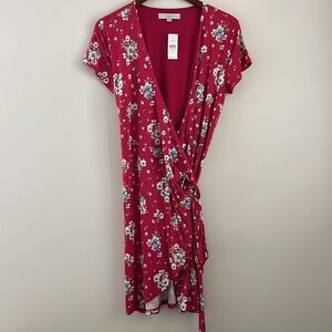 LOFT NWT Floral Pink Red Wrap Dress | Size Medium