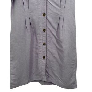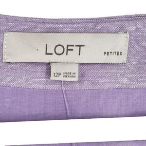 LOFT Orchid Flash Linen Button Front V-Neck Puff Sleeve Dress Size 12 Petite NWT