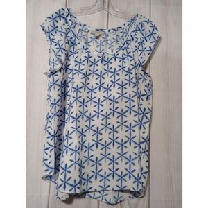 LOFT Outlet Shirt Ladies Medium Blue White Blouse Capped Sleeve