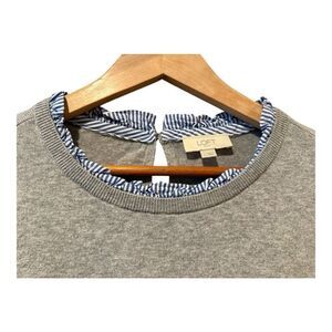 LOFT Outlet Sweater Womens Gray White Blue Striped L