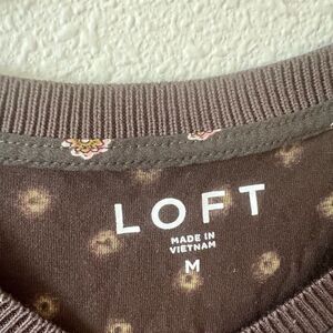 Ann Taylor LOFT Ribbed Trim Mixed Media Shell Top Midnight Caper