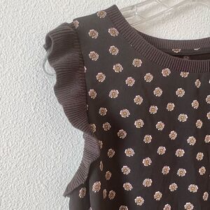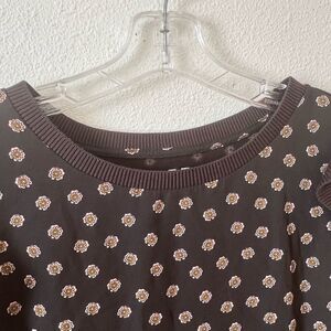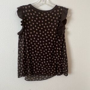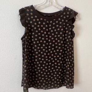 LOFT Petites Green Floral Ribbed Sleeve Trim Mixed Media Shell Tank Top-M