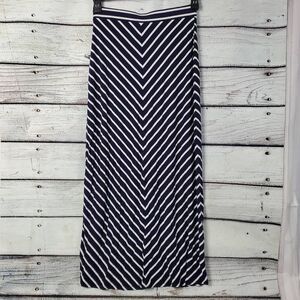 LOFT Petites Maxi Skirt XXSP Navy White Chevron Stripe Rayon Stretch Long Skirt