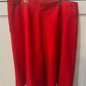This stunning red skirt from LOFT is designed for business or cocktail occasions, featuring a sleek knee-length cut that exudes sophistication. Its vibrant hue and tailored fit make it a standout piece, perfect for a night out. The skirt's classic style ensures a flattering silhouette, adding a touch of elegance to your ensemble.