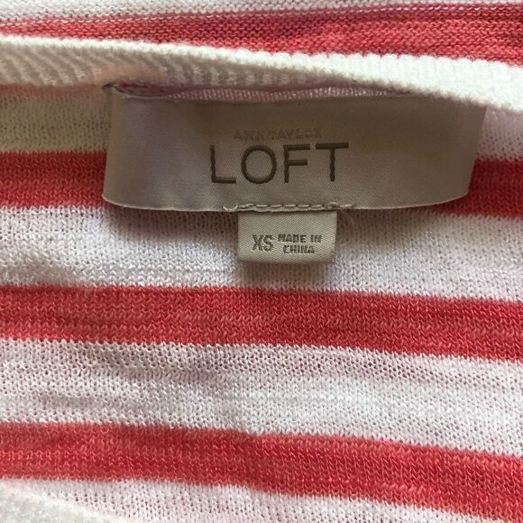 Loft Sweater/Top, light Weight, Stripes, coral/reddish and white, Rayon/cotton Blend, Size XS