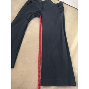 LOFT Sailor Style Cropped Pants. Size 8. Blue. Waist measures approx. 16” across. Pants zip and hook & eye closure with a button closure. The button is missing (see photo). Material is 67% cotton, 31% rayon, 2% spandex. 2 front pockets, and both pockets have 3 decorative buttons on them. Leg opening is approx. 9.5”.inseam is approx. 24.5”.